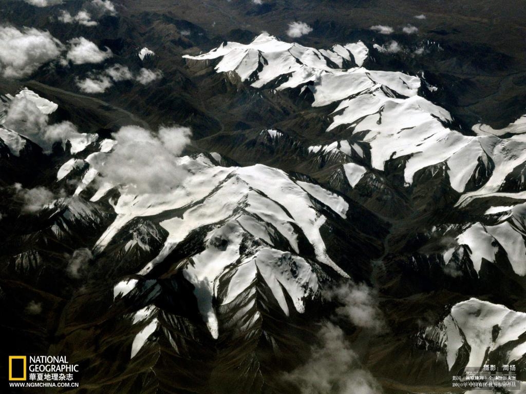 说明:青藏高原及其周边山脉是除极地之外含冰量最大的地区,差不多占到全世界人口的三分之一的人民都仰赖这片高原地带中冰雪融水所孕育的河流为生。然而一场危机正在世界屋脊之上酝酿,平衡已遭破坏……雪山冰川正在大面积萎缩,冰雪融化暴露出的深色区域越多,这是我2009年8月29日从迪拜飞往北京,途径青藏高原和塔里木盆地所见情景。
