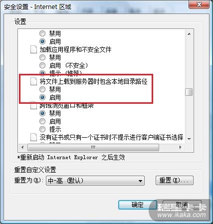 完成internet选项中“安全”设置中的如下设置后,此问题即可解决: