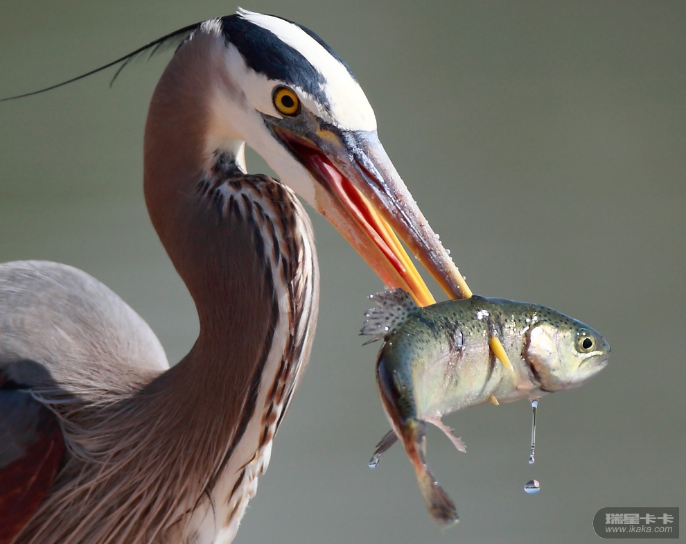 43 抢劫海鸠雏鸟的银鸥。此照片拍摄于英国诺森伯兰法尔内群岛。银鸥在海鸠领地上空盘旋三四周之后猛然俯冲下来,在众目睽睽之下抢走了一只小海鸠。