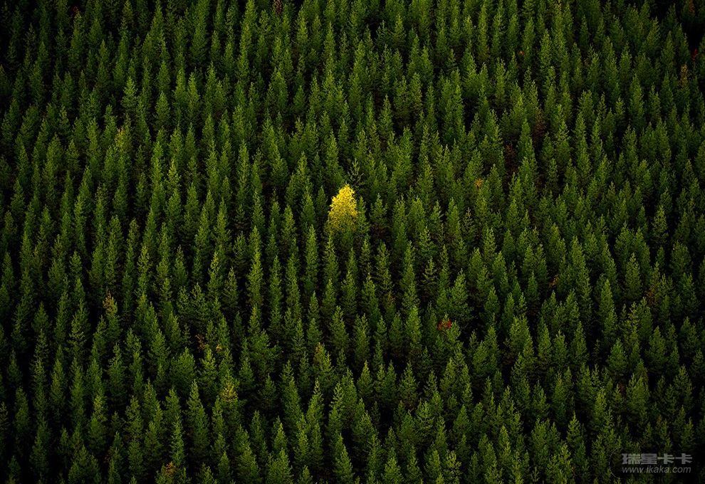 10 孤芳自赏。当时我正乘坐直升机在空中寻找可以拍摄的画面,突然被千万棵云杉簇拥的一棵大树进入了我的眼帘,于是一张光线完美的照片就到手了。