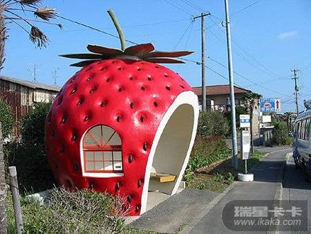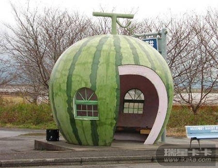 这是日本的水果公交车站,有网纹瓜、草莓等多种造型,制作非常精细,比如瓜面的网纹、草莓表面的黑点,以及它们蒂上带着的几片小叶子,无不栩栩如生——实在想知道在这样童话的车站等车,会是怎样的一种心情……我猜,大概会希望过来的是一辆白马王子驾着的四轮马车吧~