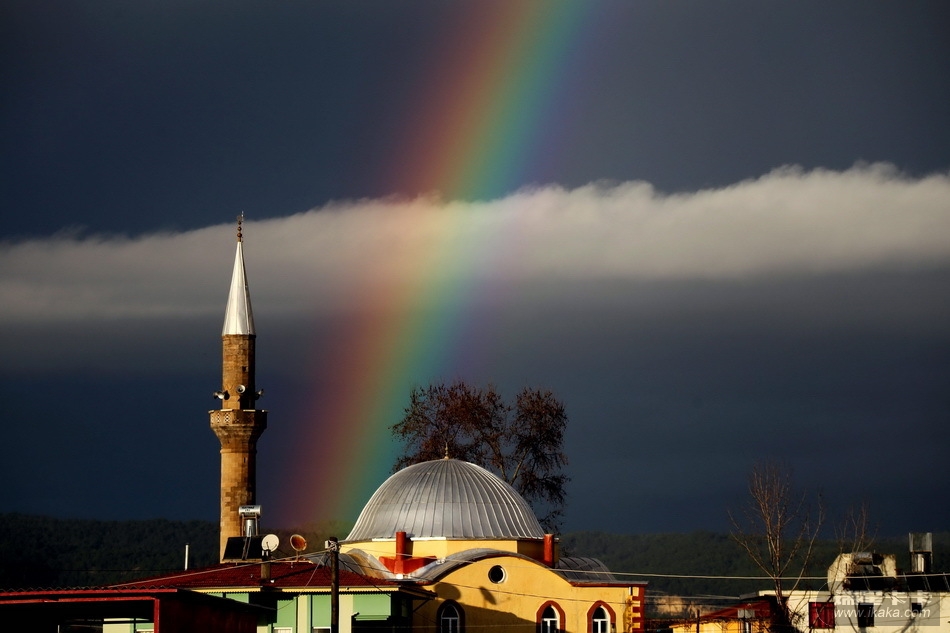2010年1月15日,在土耳其的一个清真寺上空出现了美丽的彩虹。