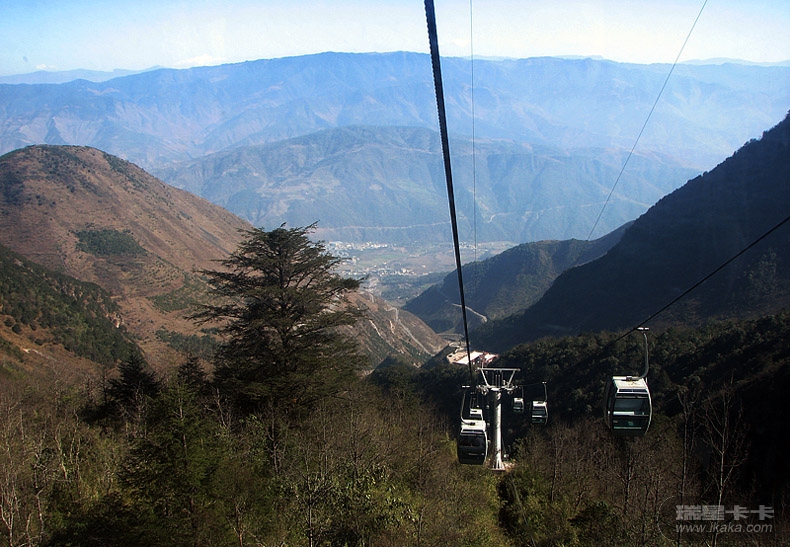 缆车穿行在崇山峻岭之上,颇为壮观