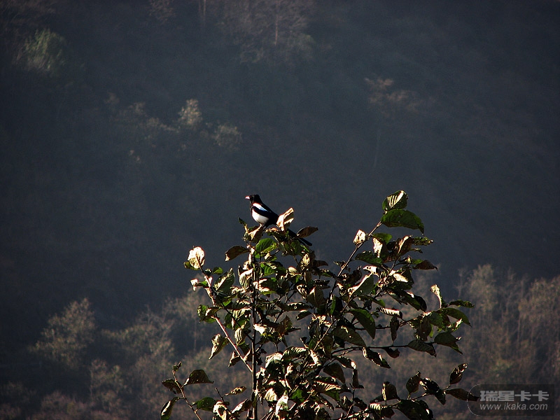 螺髻山下一喜鹊