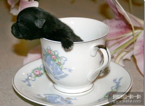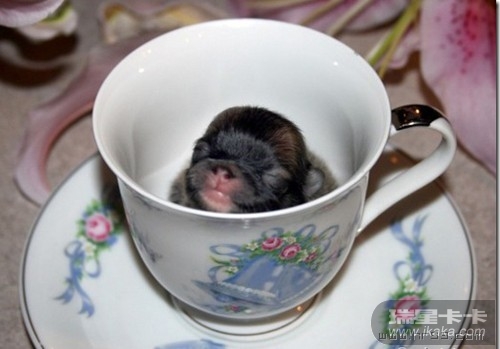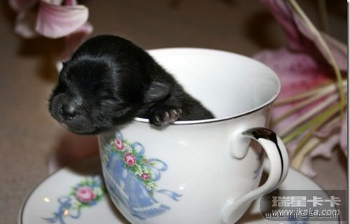 这是一只刚刚出生一天的狗狗,有趣的主人把它放到杯子中,结果就“杯具”了,狗狗变成了“新鲜出炉的狗狗奶茶”