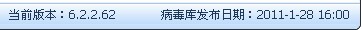 大家卡卡版本多少啦???我的一直是6.2.2.62 病毒库发布日期是:2011-1-28 16:00 再也没有更新了手动升级都是最新版。。。。。