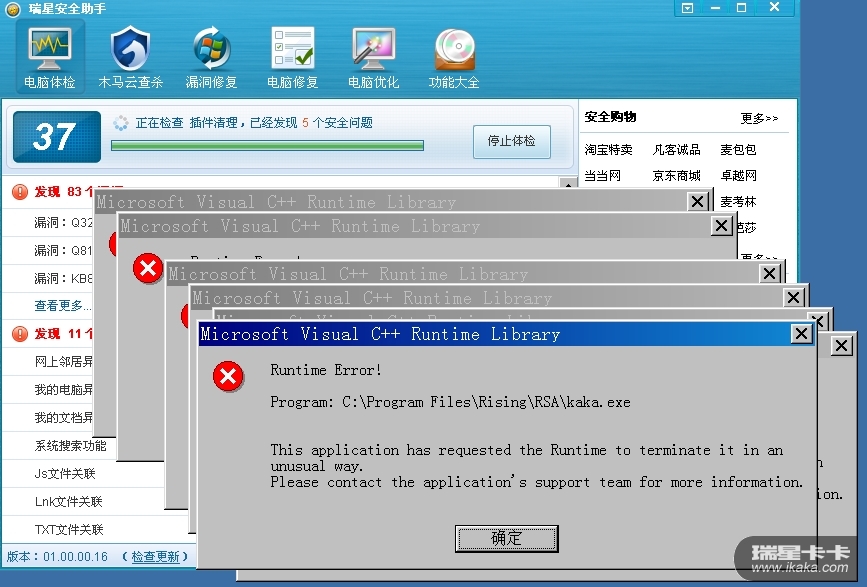 请将助手升级至最新版本,将瑞星助手安装目录下的所有后缀为dmp的文件压缩后跟帖上传。