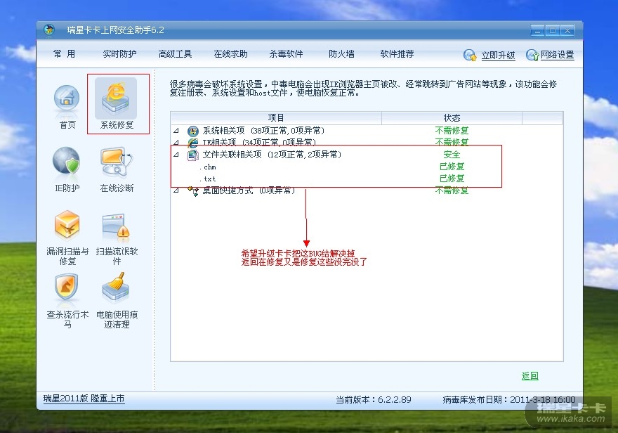 版本号截图不就有吗!注册表的未修复键值截图也有啊!