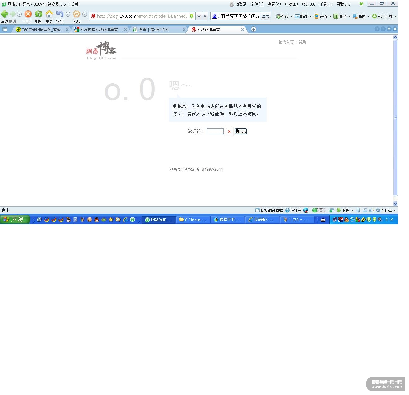 可以打开网易博客首页,但其中任一博文链接就出现下面对话框,看不清验证码,用很多杀毒软件都无法清除。