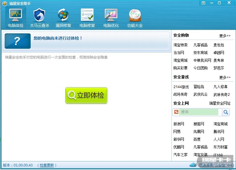 您操作系统是多少位的?请查看瑞星安全助手安装目录下是否有.dmp格式文件,如果有请您上传。