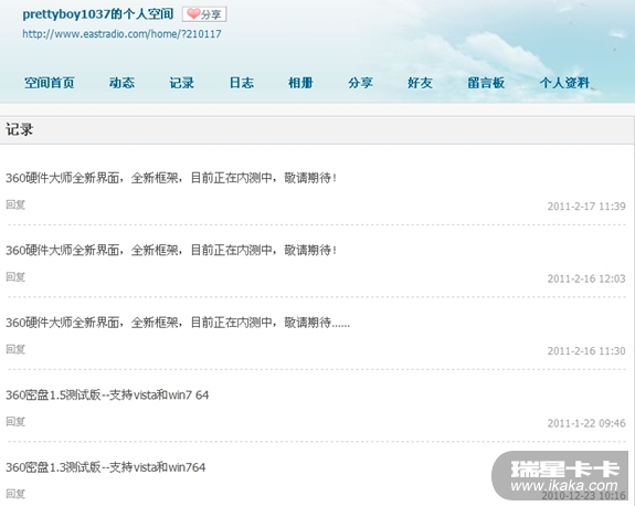 这位同学忘了自己的个人空间与“菲菲2010”的注册用户名相同:prettyboy1037