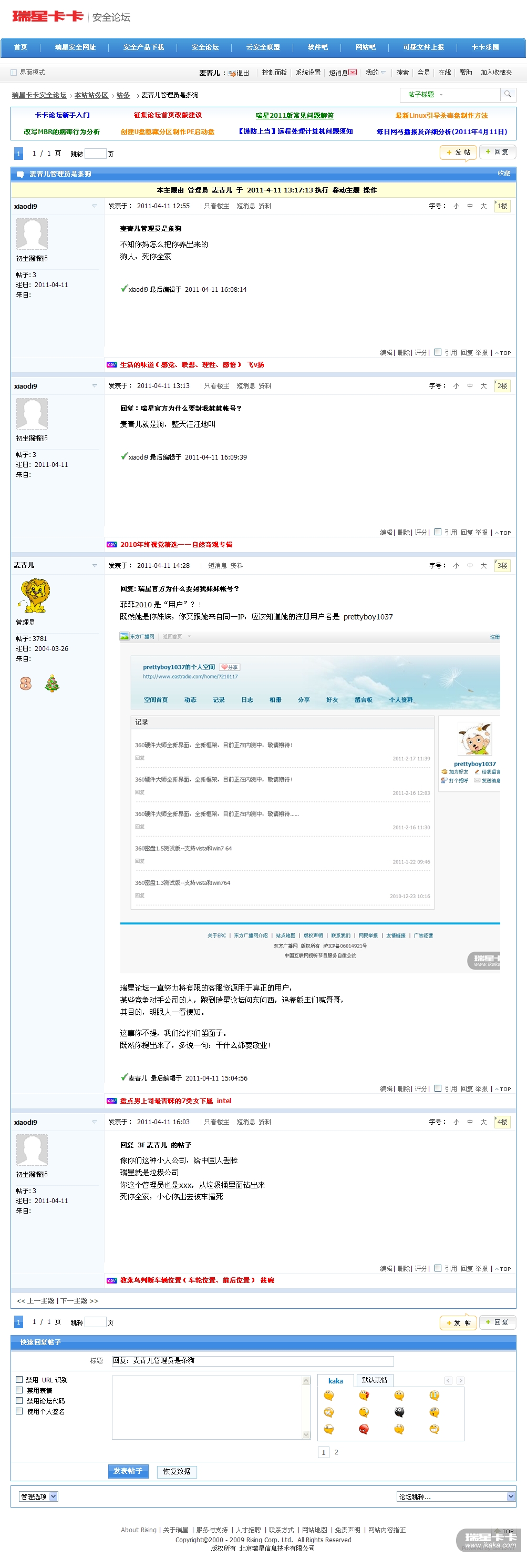 某些竞争对手公司的人,冒充瑞星用户跑到卡卡论坛问东问西,