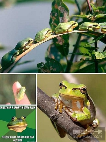 在很多年前的德国,孩子们能捉到一种叫“Laubfrosch”的温带树蛙。这种青蛙在天气转暖时会爬上树枝。有人做过这样一个实验,将这种蛙置于一个玻璃缸内,将一个木制梯子搁里头,你就会观察到青蛙随着气候的变化爬上爬下。