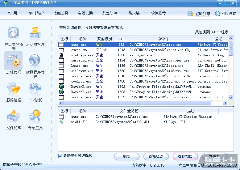 查看瑞星的监控、任务管理器进程也没有可疑的进程。