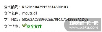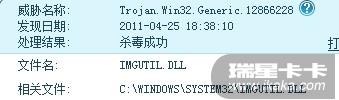 我的瑞新也是提示imgutil.dll有病毒,可是又删不掉,而且我从网站上下载一个新的imgutil.dll文件瑞新也提示有病毒,会不会是误判啊。