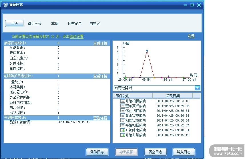 重装的WIN7网上更新完SP1再装瑞星更新到最新病毒库