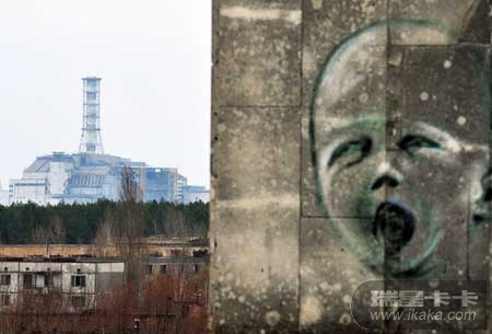 2011年4月4日,切尔诺贝利核电站附近的乌克兰小城普里皮亚季,画有涂鸦的墙壁。墙壁的远处就是发生事故的切尔诺贝利核电站4号反应堆机组。1986年4月26日,在进行一项实验时,原苏联切尔诺贝利核电站4号反应堆发生爆炸,30人当场死亡,8吨多强辐射物泄漏。此次核泄漏事故使电站周围6万多平方公里土地受到直接污染,320多万人受到核辐射侵害,酿成人类和平利用核能史上的一大灾难。事故发生后,原苏联政府和人民采取了一系列善后措施,清除、掩埋了大量污染物,为发生爆炸的4号反应堆建起了钢筋水泥 “石棺”。离核电站30公里以内的地区被辟为隔离区,很多人称这一区域为“死亡区”。