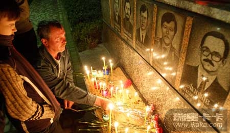 2011年4月26日,乌克兰切尔诺贝利核电站附近的小城斯拉夫蒂奇,人们点燃蜡烛纪念在切尔诺贝利核事故中英勇献身的消防员。今年的4月26日是切尔诺贝利核事故25周年的纪念日。1986年4月26日当地时间1时24分,前苏联乌克兰共和国切尔诺贝利核电站发生严重泄漏及爆炸事故,这是人类和平利用核能以来最严重的灾难之一。