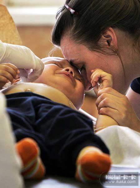 2006年4月18日,在白俄罗斯首都明斯克的儿童肿瘤及血液病中心,一名母亲在孩子接受治疗时潸然泪下。这家儿童肿瘤及血液病中心是在切尔诺贝利核事故之后,为帮助核事故中受害的患儿所建立的。