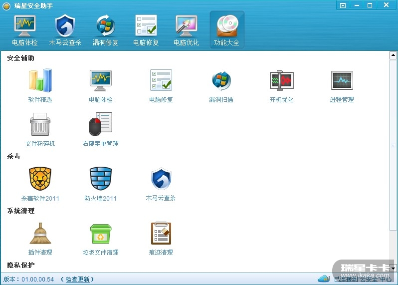 希望瑞星尽快的增加软件管家和监控防御,并优化界面交互。扫描垃圾文件的能力有点弱,根本扫描不出来,可以把卡卡的清理内容整合到安全助手里,瑞星加油!