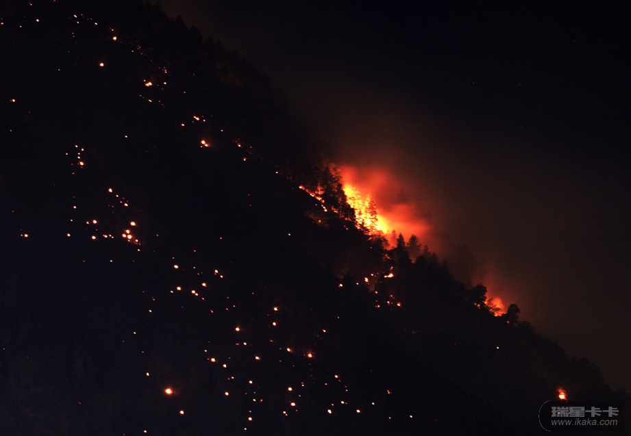 瑞士发生森林火灾 过火面积达数百公顷报道说,火灾由维耶日附近一家汽车修理店引起。由于持续干旱,当天又刮起大风,火势迅速蔓延,附近山坡上森林燃起大火。险峻的山势阻碍了消防队员灭火,10架直升机轮番洒水救火,直至当晚9时因天黑才停止飞行。消防队员继续扑救,瑞士军队也出动了120名军人增援。