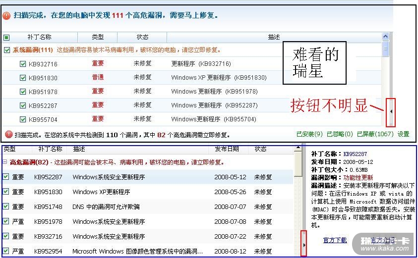 人家的 一打开漏洞扫描 ,就显示 右面的补丁信息------即展开了补丁说明