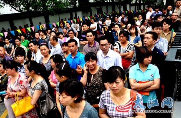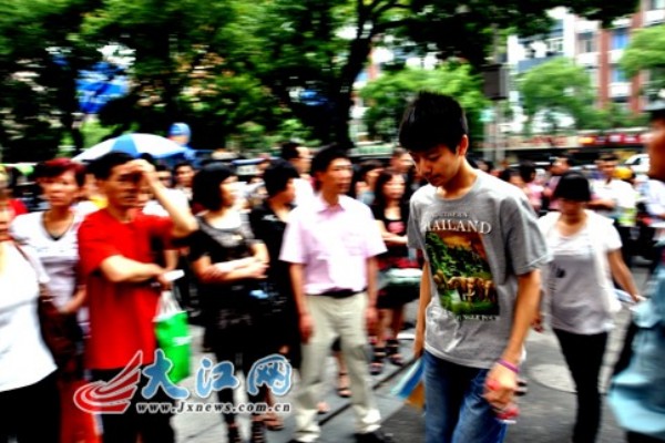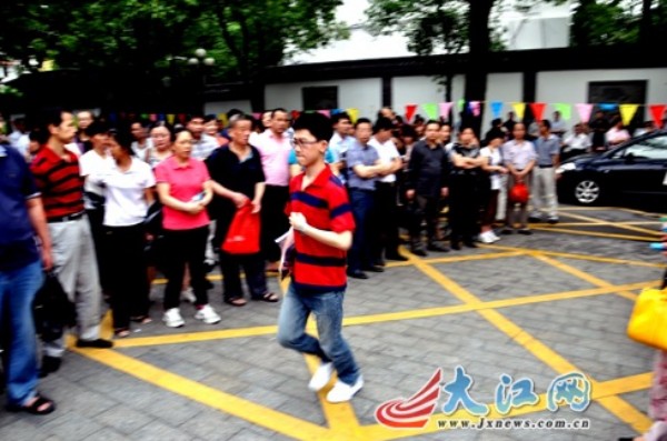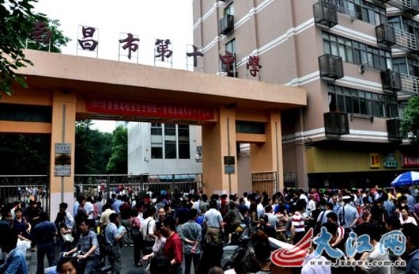 南昌十中考点外庞大的“陪考大军”