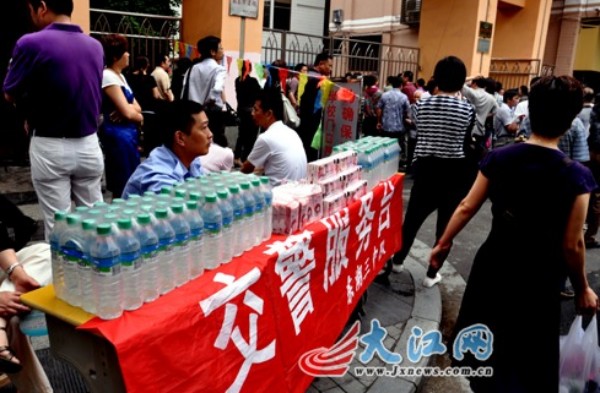 部分单位在考场外为考生提供爱心服务