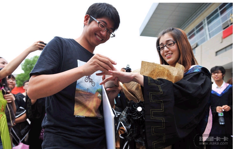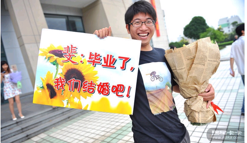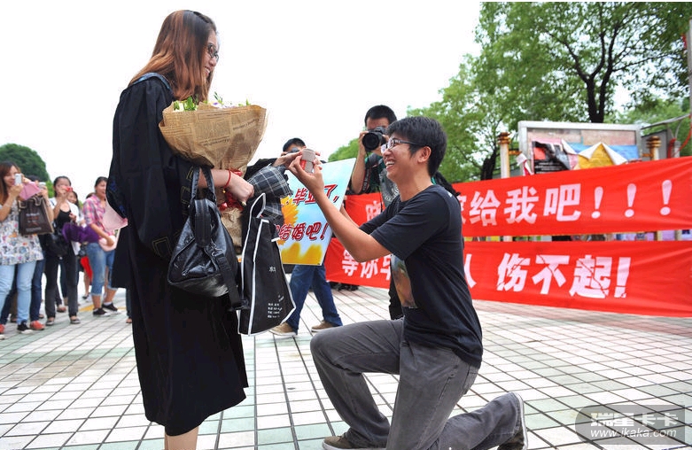 杭州市浙江传媒学院校园里,一幕浪漫的求婚记正在上演。青年男子黄佳健带上鲜花、“心声牌”以及亲友团,早早地等候在毕业典礼的会场外。当刚参加完毕业典礼的女朋友出现时,黄佳健勇敢地单膝下跪,表达爱意:“晓婓,嫁给我吧!”现场一片欢呼和祝福声。求婚男子黄佳健也是该校前两届的毕业生,他们在校园相恋,今天毕业了,他们也迎来了人生中最幸福浪漫的一刻。