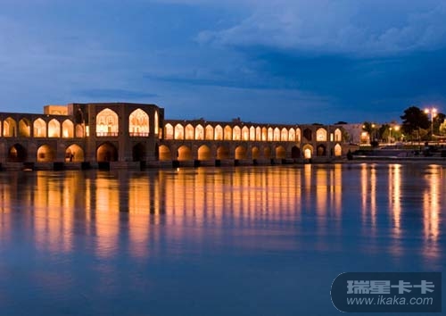 3. 位于伊朗中部城市伊斯法罕的Khaju大桥是一座双层砖石结构的步行桥,也是当地居民350多年来聚会的场所。大桥全长132米,距离河面很低,最具特色的是它那23个具有伊斯兰风情的拱形桥洞。