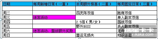 每周固定日常:每周固定系统日常活动(可参阅 游戏内“日常”说明)