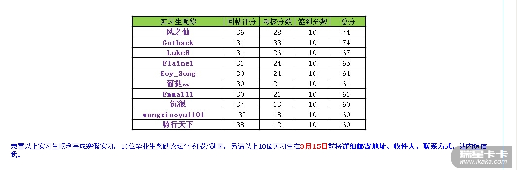 刚看了 今年寒假实习只有10个人顺利毕业 有木有!!介。。鸭梨好大啊! 而且木有优秀毕业生 ,感觉要毕业真心很难啊!