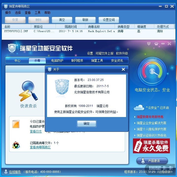 什么什么程序已中毒。我怀疑是误杀。求界定。系统是我重新装的。为什么会这样?不解。