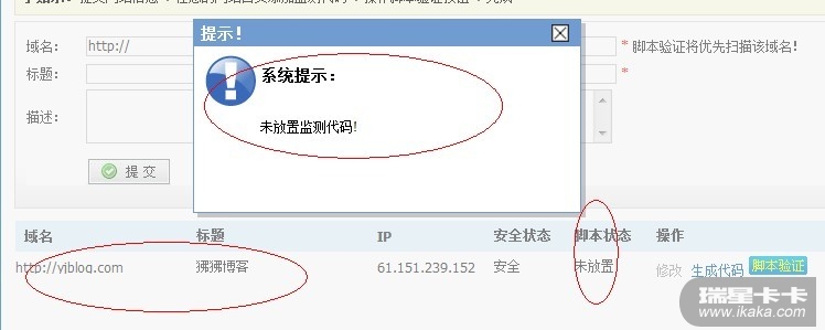 验证脚本:未放置检测代码