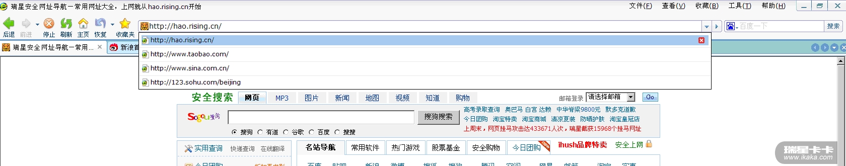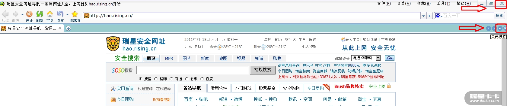 浏览器左上角的图标不醒目,没有采用瑞星常使用的蓝色和黄色,而使用