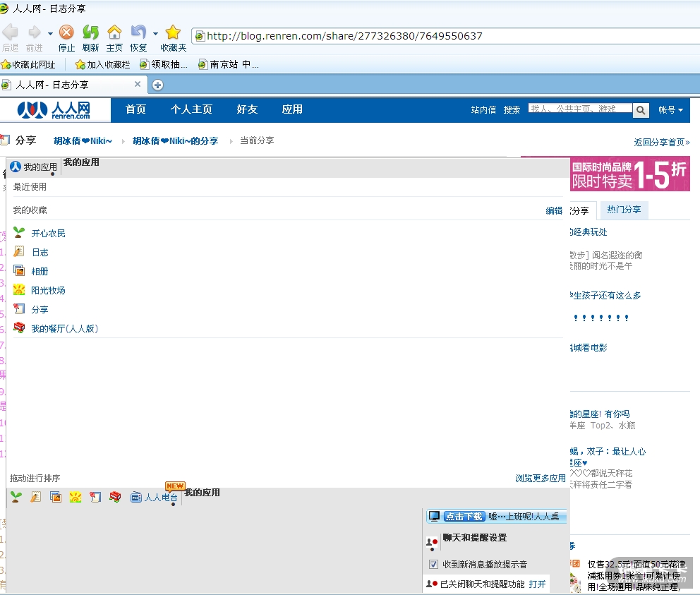 补充说明,仅登录人人网查看自己好友分享日志时才会出现,必现,直接点击日志分享连接不出现问题。