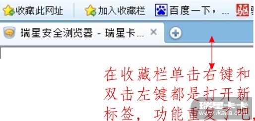 操作步骤:在收藏栏单击右键和双击左键都是打开新标签,功能重复了,