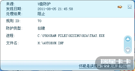 U盘中已有U盘免疫的文件夹,但是仍提示免疫失败,瑞星还会拦截