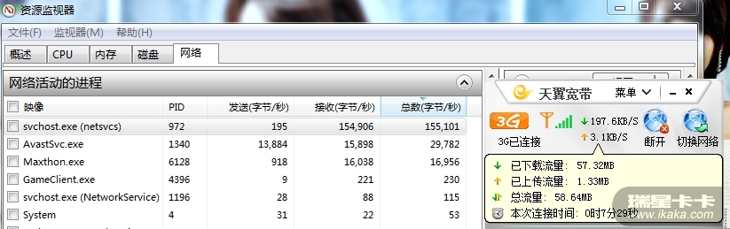 个人使用按流量计费的3G卡,一般建议要学会如何终止电脑内任意不需要的连网行为或软件。
