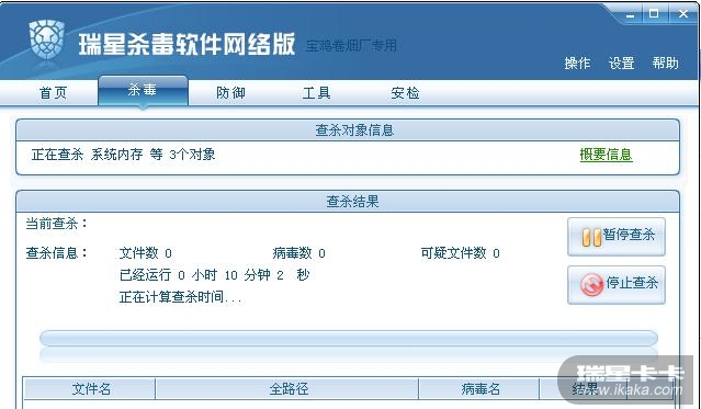 运行瑞星全盘查杀,显示一直在计算查杀时间,就是不见开始查杀,附件中是状态截图,甚至几个小时了还一直是这样,不知是什么问题?