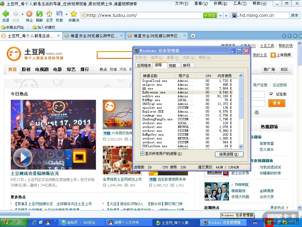 8.瑞星浏览器没有多进程,这将意味如果一个页面假死了,其他页面将无法进行操作。