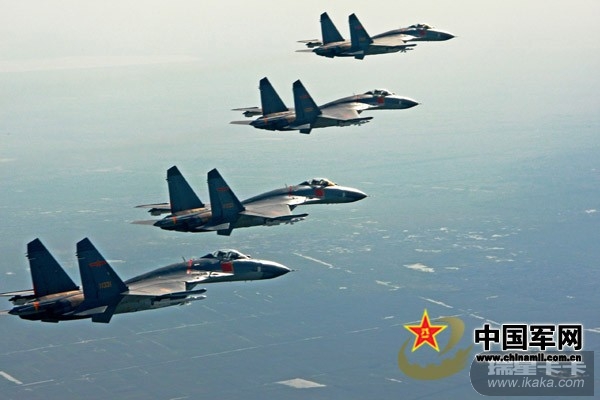 资料图:歼-11梯队起飞准备集合,进行编队训练。