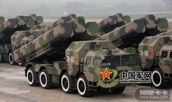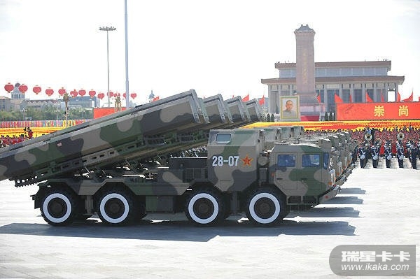 资料图:国庆60周年阅兵东风-21导弹进行演练。