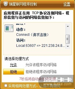 瑞星一直拦截自己的一个联网程序干什么?