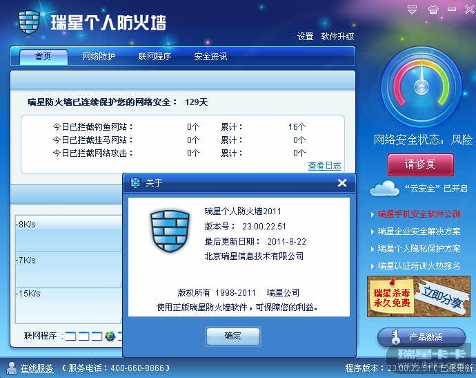 瑞星个人防火墙V16