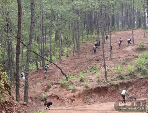 当我和爸爸终于来到凉山脚下一个叫做东河乡繁忙集镇的时候已经是星期天了。一个礼拜中的第七天,山民们从山中各个地方来到这个小镇出售或物物交换他们的东西或者休闲一下。我们是从西昌城坐越野车来到这个山镇的,西昌城里三位以前我们素不相识的爱心人士热情地帮助了我们,他们是黄红斌叔叔、徐旭叔叔还有李秋蓉阿姨。李阿姨还周到地为我们大家准备了午餐和水。到了东河乡再往前就得靠我们步行了。黄红斌叔叔通知了山里的罗老师(彝族名字:布夫其尔)来接我们。和罗老师一起来的还有他的太太和一匹马。罗老师看到我们以及捐赠物资如书包和衣服等很高兴。我们整理了一下肩背的行装,帮助罗老师把东西绑在马背上之后一小群人就出发了,罗老师的太太(彝族名字:阿侧伍各)和别的山民妻子们走在前面。