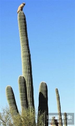 据库尔特猜测,那只野猫或许是误入了美洲狮的栖息地,美洲狮为了保护自己的幼崽和领地就追了出来。小野猫避难的这株巨型仙人掌足有15米高,浑身布满利刺。在危难时刻能够爬上那么高的仙人掌且毫发无伤,对小野猫来说也真够幸运的了。