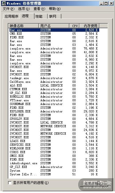 进程里好多rar.exe find.exe严重拖慢系统速度,重装后还有,rar.exe是winrar里的文件,并没有被修改,find.exe也一样是windows的文件。进程结束后又出来,本人用冰刃查看,结束了一个svchost.exe才不出来rar.exe find.exe。因为涉及到svchost,又看看服务,没什么异常,求解