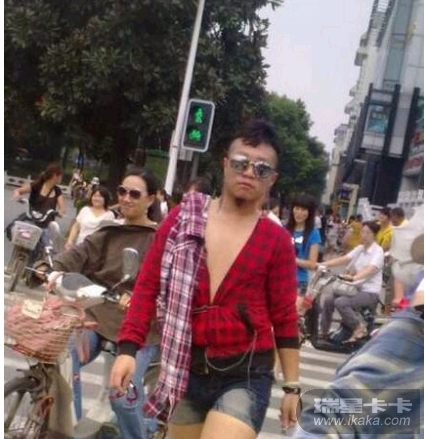 文昌阁惊现扭扭哥:奇异发型、下颌性感胡须、耀眼红衣、热裤、驼色十公分高跟鱼嘴鞋一路扭得摇曳生姿,一路所到之处,留下无数惊叹和笑声!看到他的时候他正绕着文昌阁转圈!