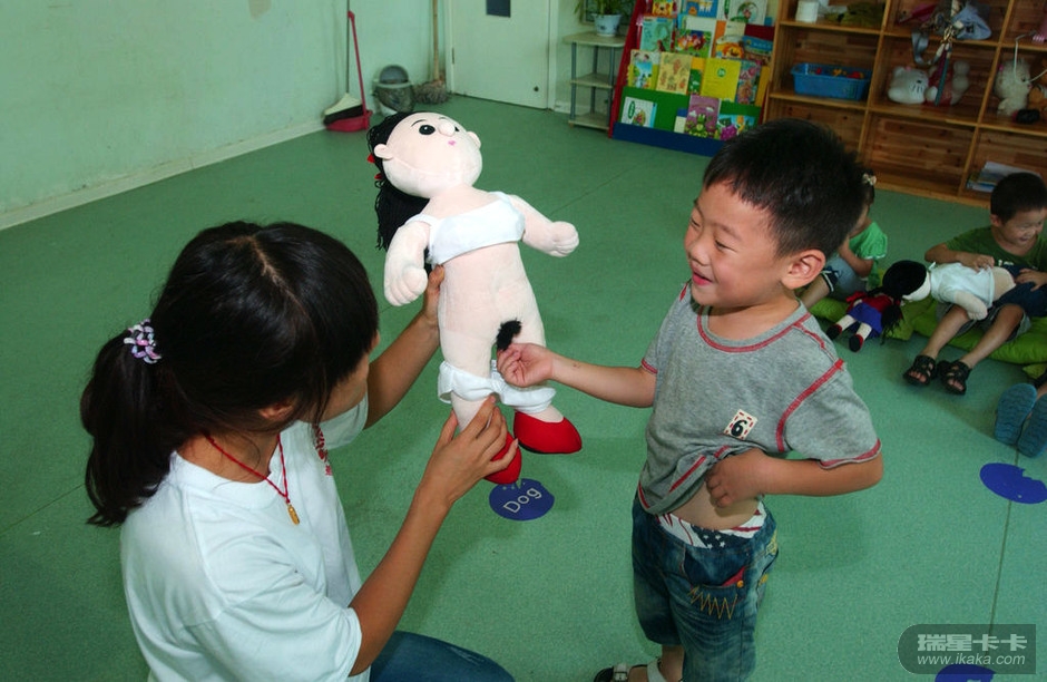 8月29日,郑州某幼儿园,小朋友在老师的引导下去摸一个和真人一样的布娃娃。据园方介绍,该幼儿园自2008年起已经开始给小朋友上性教育课,尺度非常超前。